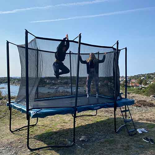 - A rectangle shape has a larger jumping area than equivalent round trampoline.